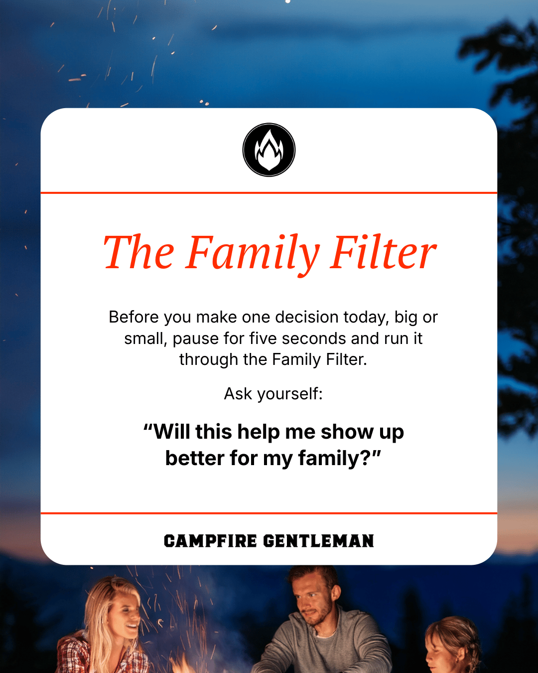 Before you make one decision today, big or small, pause for five seconds and run it through the Family Filter. Ask yourself: “Will this help me show up better for my family?”
